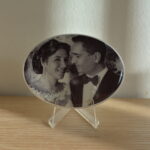 A photoceramic is a portrait infused to porcelain at high temperatures. It’s permanent, waterproof, and designed to last outdoors for generations.